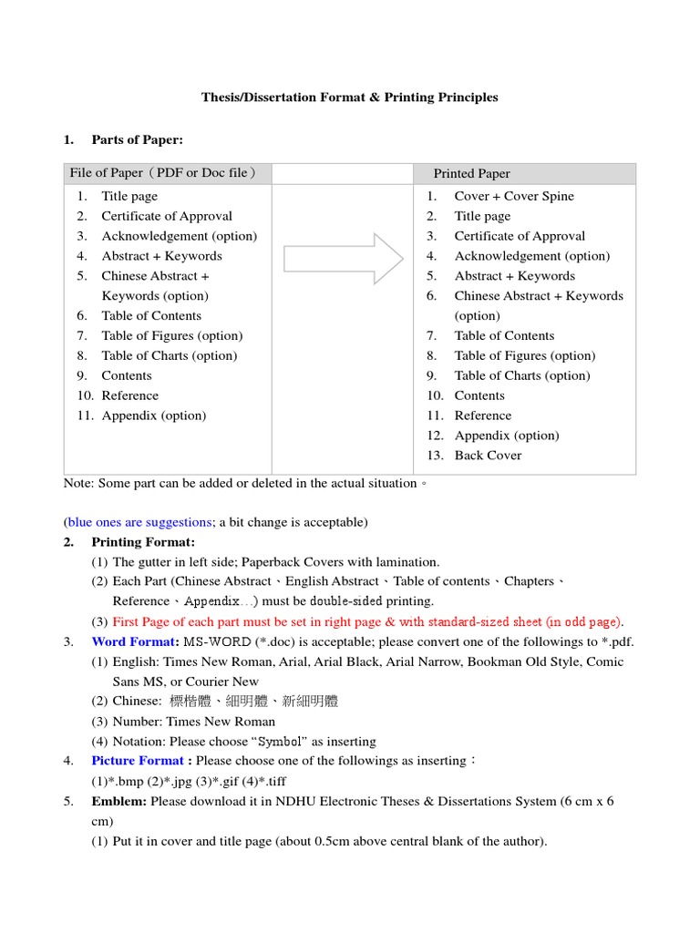 Thesis Format And Printing Guide Thesis Times New Roman